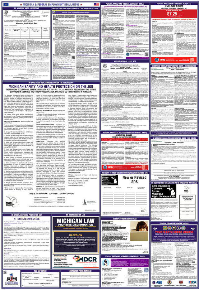 With the All In One Poster Company Compliance program, our team will monitor changes in labor laws for you. Subscribers will receive replacement posters whenever mandatory updates occur. Changes may happen multiple times per year, annually, or less frequently, depending on state or federal requirements. The very nature of these changes is quite unpredictable, except for a few that have yearly cycles, such as minimum wage increases in certain states.