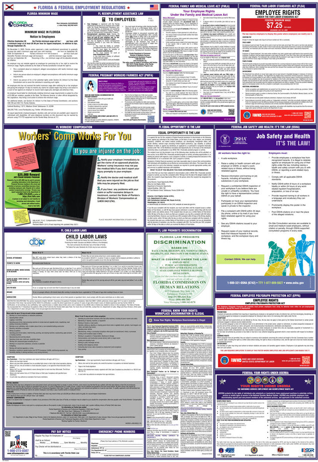 To ensure our clients’ success, our team always tries to stay at the forefront of United States Labor Law. It's important for both employers and employees to be aware of the specific labor laws that apply in their state to ensure compliance and protect workers' rights. On our website, you’ll be able to browse through hundreds of posters to help your company keep up with the latest labor law regulations. These posters display information about minimum wage, overtime, workplace safety, and other laws that vary from state to state.