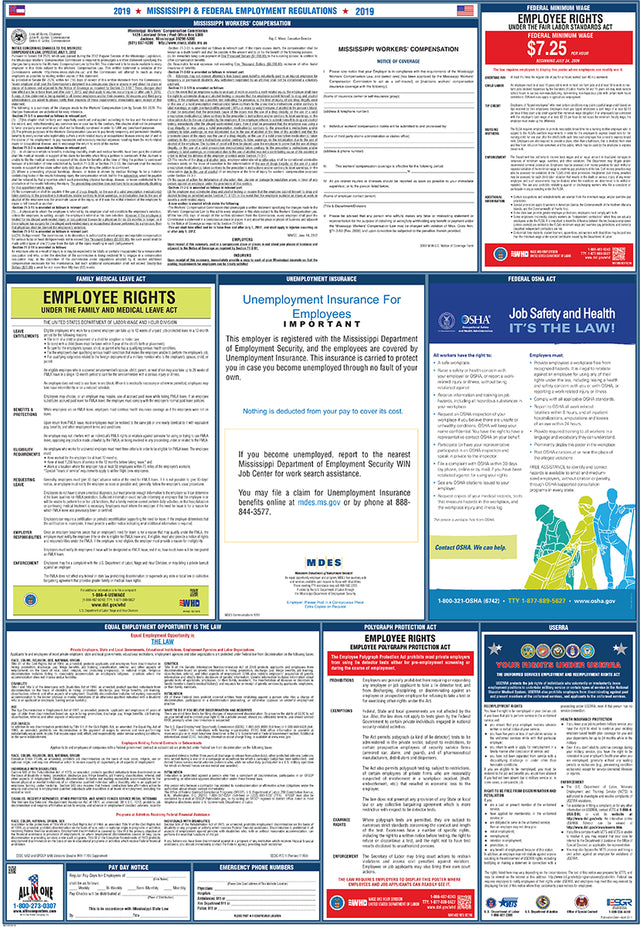A combination state and federal compliance poster is a single poster that consolidates mandatory workplace postings required by both federal and state labor laws. These combination posters are convenient because they cover federal requirements, like those from the U.S. Department of Labor, and unique labor regulations that differ from state to state. At All In One Poster Company, we supply over fifty different state-and-federal combination compliance posters, unique to every single U.S. state, plus Puerto Rico and Washington D.C.