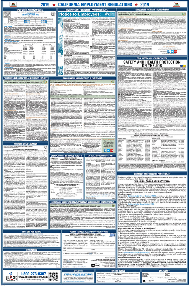 With the All In One Poster Company Compliance program, our team will monitor changes in labor laws for you. Subscribers will receive replacement posters whenever mandatory updates occur. Changes may happen multiple times per year, annually, or less frequently, depending on state or federal requirements. The very nature of these changes is quite unpredictable, except for a few that have yearly cycles, such as minimum wage increases in certain states.