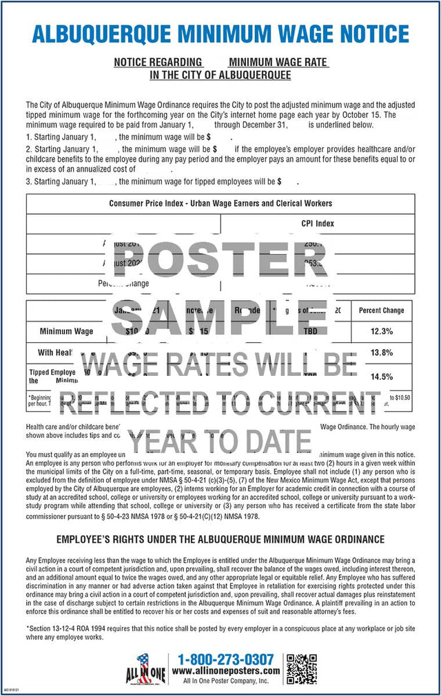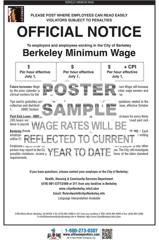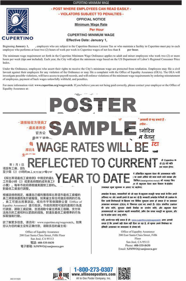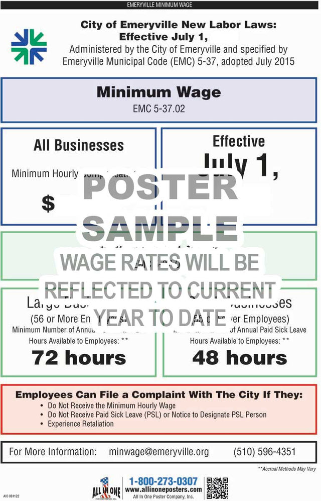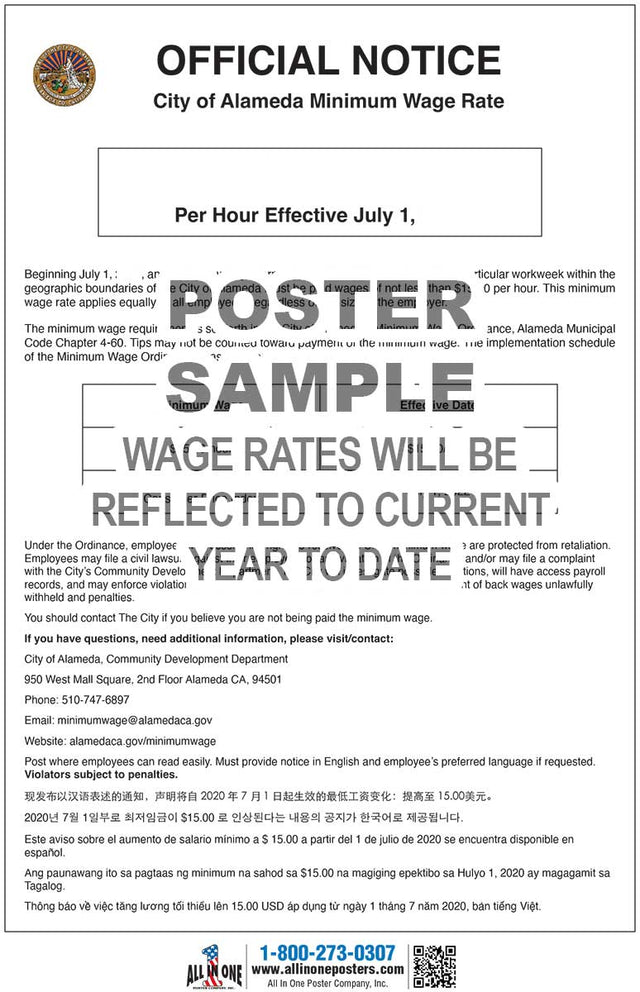 With the All In One Poster Company Compliance program, our team will monitor changes in labor laws for you. Subscribers will receive replacement posters whenever mandatory updates occur. Changes may happen multiple times per year, annually, or less frequently, depending on state or federal requirements. The very nature of these changes is quite unpredictable, except for a few that have yearly cycles, such as minimum wage increases in certain states.