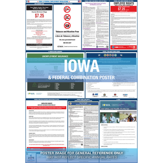 Depending on your industry and location, additional posters may be required that are not included in the Combination posters. We have the information listed on the specific state's combination poster page. For example, E-Verify/Right To Work is required for certain states; the Industrial Welfare Wage Commission Order or IWC for the state of California; and the Texas Identity Theft for bars and restaurants in the state of Texas. We also offer free downloads of the additional minor state/industry-specific requirements HERE.