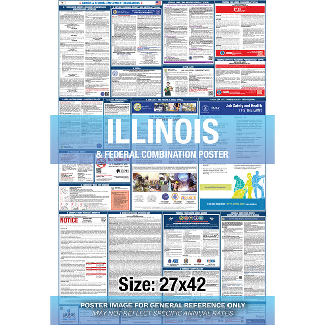 - State and Federal Labor Law Posters: Standard size is 27" x 39" (27" x 42" for some states).
