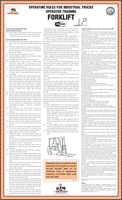 The contents of this poster reflect the rules and regulations noted on CAL OSHA's General Industry Safety Order 3664, 3650, which describe Operating Rules for Industrial Trucks and Tow Tractors, and 3668 which describes Operator Training for Powered Industrial Trucks. Every employer using industrial trucks or industrial tow tractors, shall post and enforce a set of operating rules including the appropriate rules listed below: