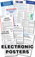 NOTE: Our Electronic Posters (E-Posters) are individual representations of all the State and Federal required notices. It is designed to either be available on a shared network so employees have access to the notices collectively, or to be printed out as is for immediate need. It is NOT the PDF file of our actual All In One Combination Poster. To ensure proper compliance with size requirements, and to prevent legal action from improper size manipulation, these PDF files are LOCKED from further editing and formatting.