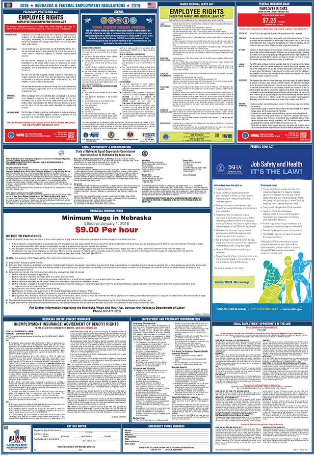 With the All In One Poster Company Compliance program, our team will monitor changes in labor laws for you. Subscribers will receive replacement posters whenever mandatory updates occur. Changes may happen multiple times per year, annually, or less frequently, depending on state or federal requirements. The very nature of these changes is quite unpredictable, except for a few that have yearly cycles, such as minimum wage increases in certain states.